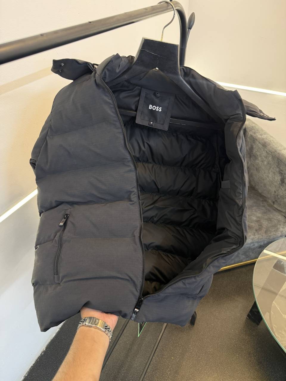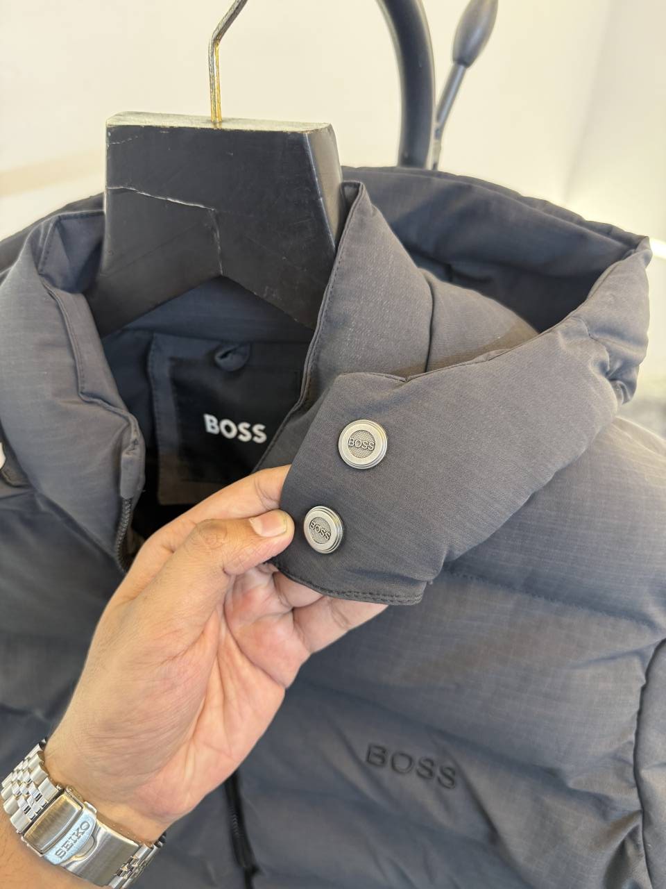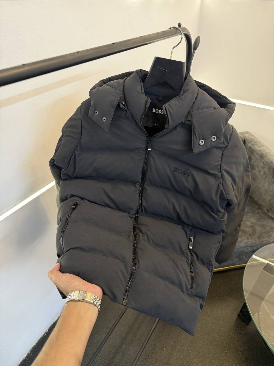 ? *One of the most awaited article of winter hugo boss puffer jacket with spray print removeable cap inside pocket with 2 front pocket with brand zip and brand buttons now in stock*?
